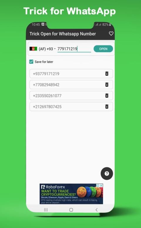 With free Trick tool you can open any conversation with any phone number on whatsapp messenger