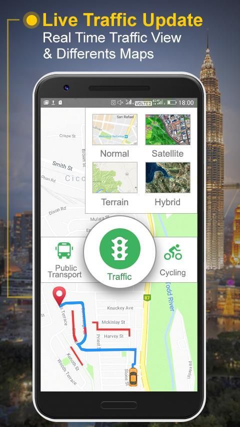 Nearby places contains hundreds of thousands of POI and that too in major categories to enhance visibility and to match the users interests and needs. Free Universal GPS Navigation App allows you to explore different categories e.g. restaurants, tourist, banks, hotels, ATMs, shopping malls, Colleges, Universities, Saloons, Bus Stops and public transport. Free Universal GPS Navigation App is accurate, reliable and up-to-date app for all kinds of navigation. Free periodic maps update gives you real time view and data of the maps. Free Universal GPS Navigation App provides you with real time traffic conditions to plan a hassle free smooth trip, avoid blockages, traffic jams etc. Free Universal GPS Navigation App is easy to use, user friendly, time saving and reliable navigation app available at Play Store for free. Free Universal GPS Navigation App use GPS to get current position, and provides the user with options to save or share the location or to view on map. Free Universal GPS Navigation App provides you various modes of the map view, such as normal, hybrid, satellite, and general.