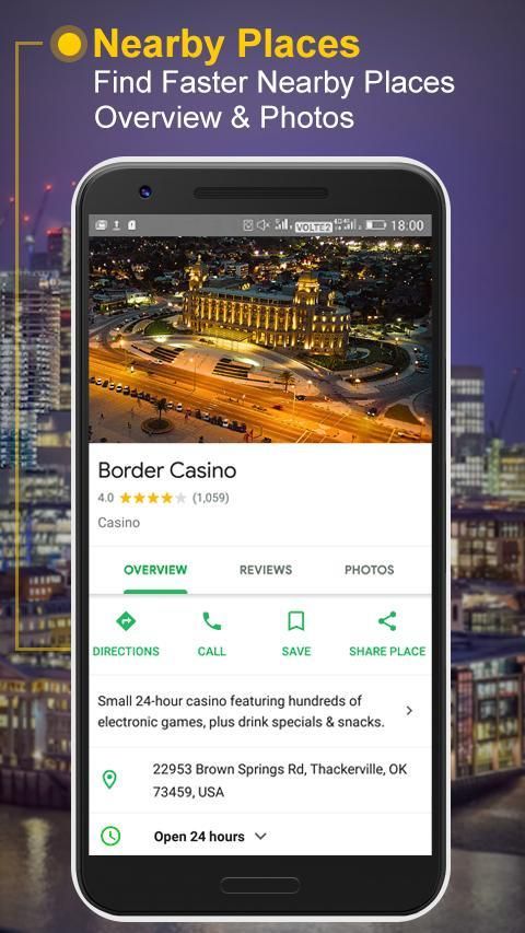 Tempat-tempat terdekat berisi ratusan ribu POI dan itu juga dalam kategori utama untuk meningkatkan visibilitas dan agar sesuai dengan minat dan kebutuhan pengguna. Aplikasi Navigasi GPS Universal Gratis memungkinkan Anda menjelajahi berbagai kategori, mis. restoran, turis, bank, hotel, ATM, pusat perbelanjaan, Sekolah Tinggi, Universitas, Saloon, Halte Bus dan transportasi umum. Aplikasi Navigasi GPS Universal Gratis adalah aplikasi akurat, andal, dan terkini untuk semua jenis navigasi. Pembaruan peta berkala gratis memberi Anda tampilan waktu nyata dan data peta. Aplikasi Navigasi GPS Universal Gratis memberi Anda kondisi lalu lintas waktu nyata untuk merencanakan perjalanan mulus tanpa kerumitan, menghindari penyumbatan, kemacetan lalu lintas, dll. Aplikasi Navigasi GPS Universal Gratis mudah digunakan, ramah pengguna, hemat waktu dan aplikasi navigasi andal tersedia di Play Store gratis. Aplikasi Navigasi GPS Universal Gratis menggunakan GPS untuk mendapatkan posisi saat ini, dan memberi pengguna opsi untuk menyimpan atau berbagi lokasi atau untuk melihat di peta. Aplikasi Navigasi GPS Universal Gratis menyediakan berbagai mode tampilan peta, seperti normal, hybrid, satelit, dan umum.