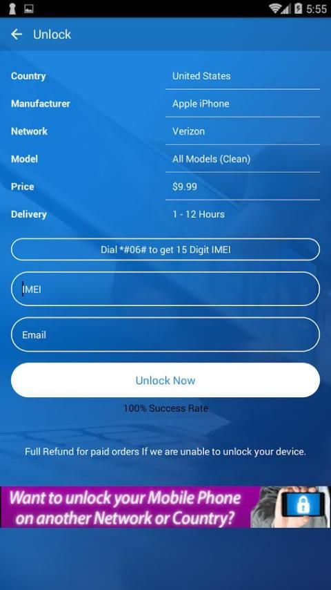 unlocking gratis untuk semua model iPhone Apple pada jaringan AT & T. Membuka semua model, bahkan yang terbaru jika SIM terdaftar sebagai bersih. Untuk jaringan lain, layanan iPhone Apple akan membuka kunci perangkat mobile Anda dengan harga yang sangat rendah. Menerima kode melalui pemberitahuan di-app. Anda akan mendapatkan pemberitahuan di aplikasi Anda segera setelah kode Anda tersedia. Mudah digunakan dan aplikasi yang sangat fungsional dan bebas untuk digunakan.
