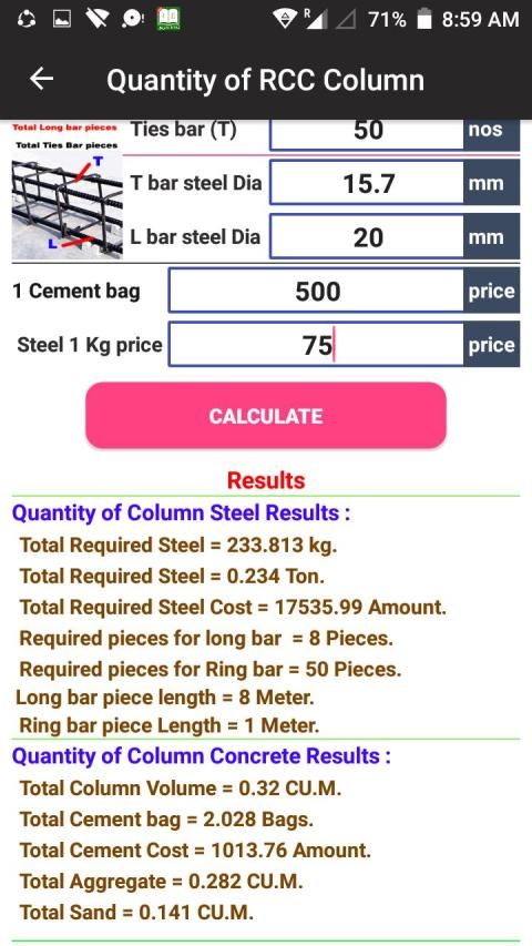 RCC Steel Calculator