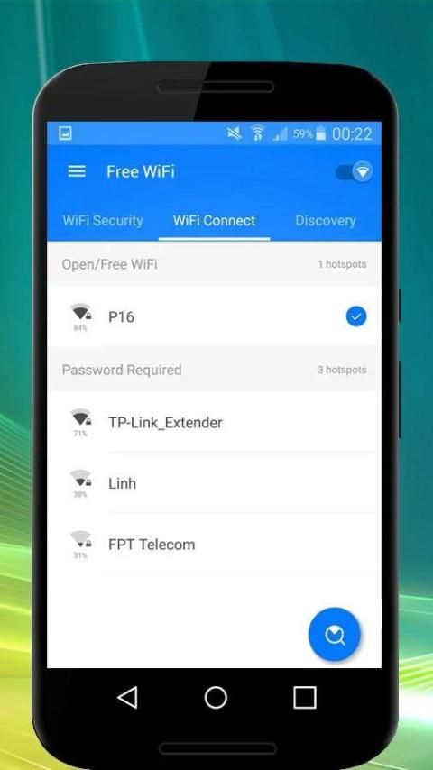 Cari & terhubung ke hotspot Wifi bersama ditunjukkan dengan kunci biru. Mudah dan aman.
