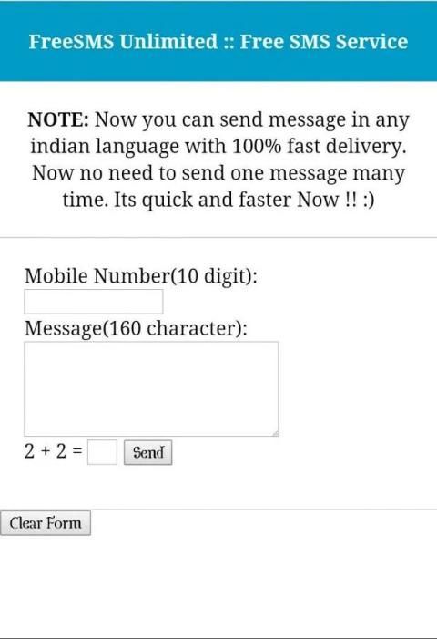 FreeSMS terbatas menyediakan layanan SMS gratis. Dengan menggunakan FreeSMS terbatas Anda dapat mengirimkan pesan 160 karakter ke teman Anda, keluarga atau siapa pun.