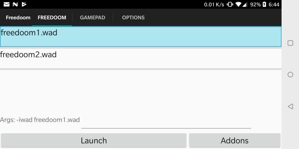2. Select the desired wad from the main screen by pressing "Addons", "WADS", then your desired wad