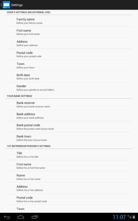 - Masukkan pengaturan kustomisasi untuk mengisi bentuk huruf (jenis kelamin, tanggal, orang direferensikan, nilai-nilai numerik dan alfanumerik ...)