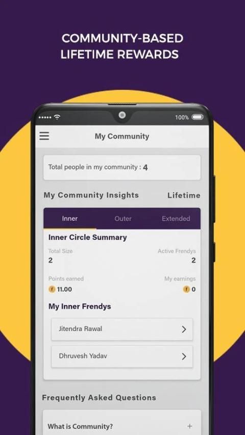 The community-based rewards promise a lifetime earning opportunity. You earn every time a friend in your community shops. What’s your community? It comprises of Inner Circle Friends – your direct invitees, Outer Circle Friends – those invited by inner circle friends, and Extended Circle Friends – those invited by your outer circle friends.