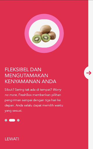 Sekotak kesegaran akan selalu tersedia untuk dikirim ke rumah Anda melalui aplikasi FreshBox. Memiliki hubungan kerjasama khusus dengan petani sayur dan buah lokal, FreshBox menawarkan kesegaran, kenyamanan dan beragam pilihan selalu. Konsep farm-to-table yang mengedepankan budidaya petani dan memajukan kesejahteraan