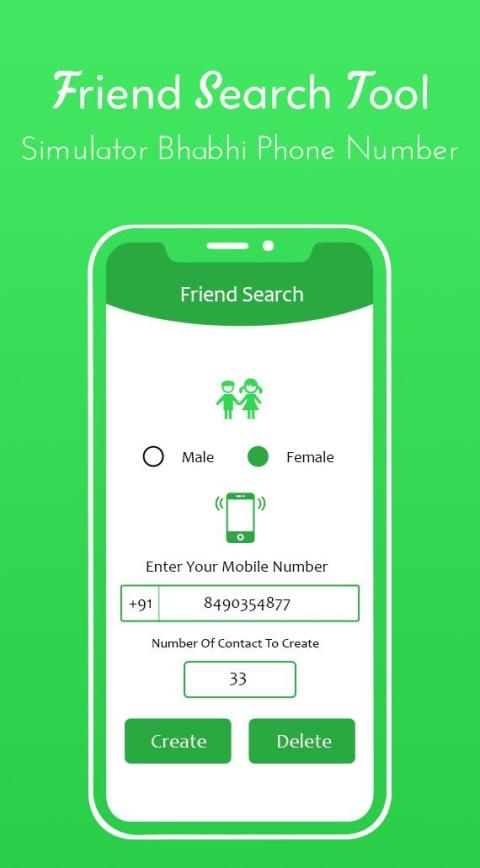 Friend Search Tool Simulator - Girls Phone Number App is simple tool to generate random Contacts phone to find a boy friend or girl friend on Wats Ap application And Other Chat Apps!