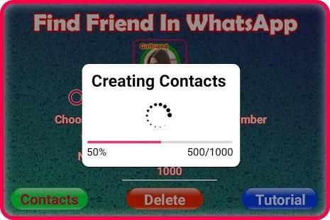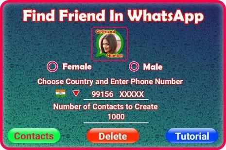 Teman Pencarian Untuk WhatsApp: GirlFriend Cari App adalah alat sederhana untuk menghasilkan acak telepon Kontak untuk menemukan anak laki-laki teman or girl friend pada aplikasi WhatsApp Dan Lain obrolan Apps!