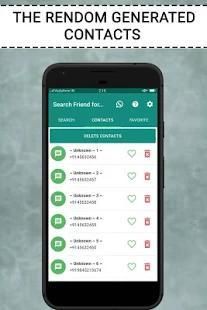 with friend search toll as this app allows you to generate random phone contact which can be used for other chat apps. Explore the world and search friends with the ultimate search tool. Friends search tool for whatsapp simply provides you the platform to create contact.