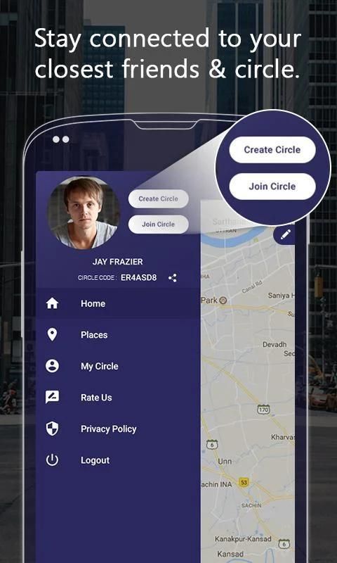 - To add friends to your circle, your friends need to have this app installed in his phone.