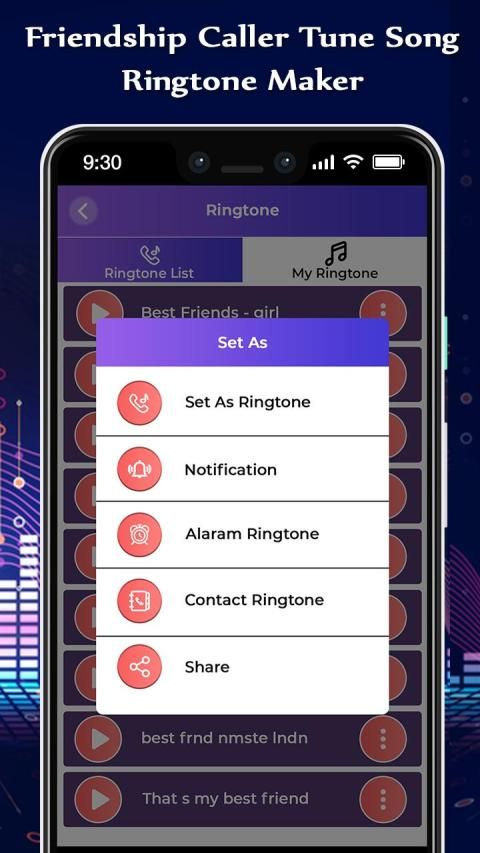 9Apps provide lots of India android apps. 20,000+ users downloaded Friendship Caller Tune Song - Ringtone Maker latest version on 9Apps for free every week! A lot of functions and features are contained in this app. This hot app was released on 2019-03-31. It get a lot of recognition after release.