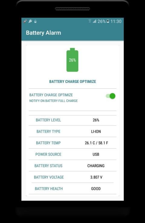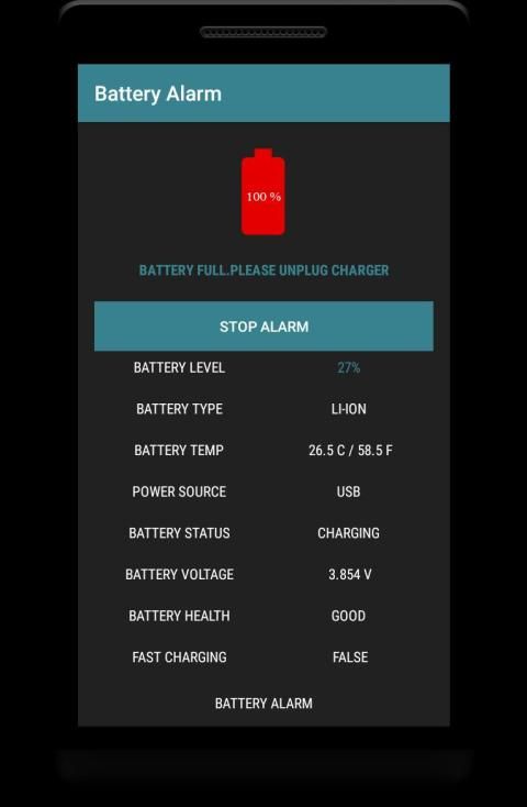 Keyword: Battery Alarm, Battery Full Alarm, Battery Status, Save Battery