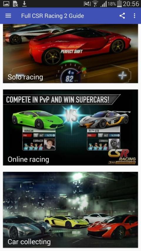 Ini adalah panduan untuk game balap populer disebut CSR Racing 2. Ini termasuk informasi rinci tentang semua mobil yang disajikan dalam permainan, seperti: