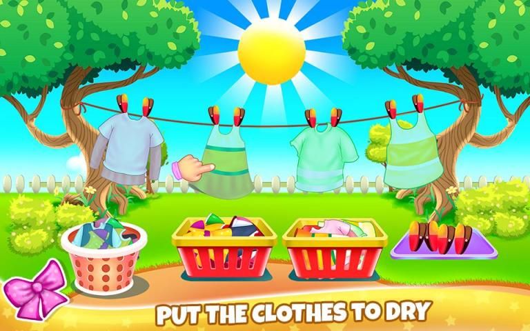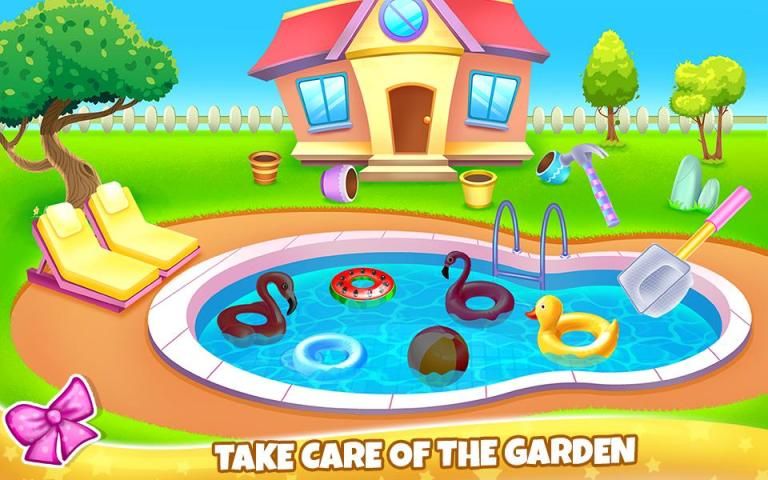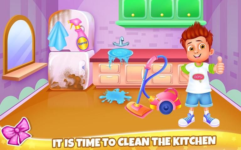 Try on this new cleaning game that we've just launched. You will have an amazing opportunity to restore an entire kid's home including the exterior. Try to do the chores around the house and maybe you will learn something that you could apply in real life because this game will teach you how to do it. Have an unusual experience with this cleaning game and try to make it appear as a presentable place for a kid. The place where you will begin this game is the laundry room. Here you must wash the dirty clothes and then hang them to dry. Separate the colors and use the machine once for the light laundry and then for the colorful laundry. Before you can start the washing machine you must repair the damaged pipes. Add washing powder and when the clothes are clean you will hang them in the garden. Move along and clean the playroom from all that dirt and disorder that gathered in there. The toys need to be arranged, also the trash must be eliminated as well as the dust. You will also be assigned to wash the kitchen which is a total mess and in order to clean it, you will use multiple cleaning tools and substances. Clean the floors, remove the stains, throw the garbage and then get rid of those stinky leftovers that are spread all over the kitchen. Fix the broken things around and add decorations items to make the place looks more like home. The garden must be restored as well. Remove any signs of dirt and repair the broken things around the pool. Clean the grass, cut it and then plant some seeds to have nice flowers. You can also decorate the garden and change the final view of it. Have fun and keep training your new skills by playing the game again.