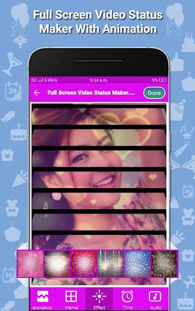 We have more colection of frames and effect to apply video for best creativity with Full Screen Video Status 2018.