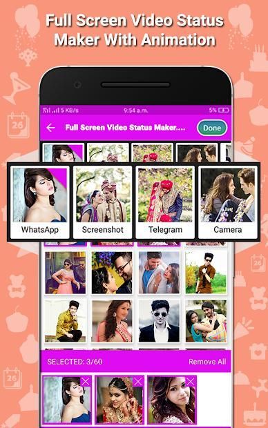 You can also create full screen video status with your imges from sdcards and gallery images .
