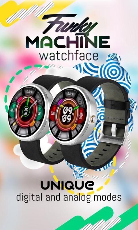 Yang funky Mesin ini dirancang untuk jam tangan Android Wear dan bekerja sempurna baik untuk putaran dan model persegi.