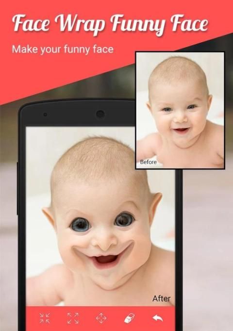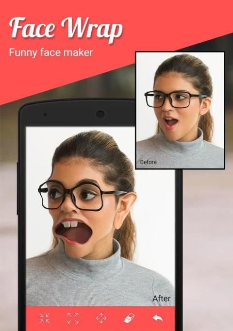 menempatkan efek sentuhan foto keren pada mereka, wajah warp, mendistorsi kaki dan meregangkan lengan, membuat teman-teman Anda gemuk atau kurus. akhirnya berbagi dengan teman-teman Anda menikmati dan bersenang-senang. warp Membuat wajah kurus atau gemuk, membuat telinga runcing, membuat mereka tersenyum. mata lucu, hidung, membuat mereka botak.