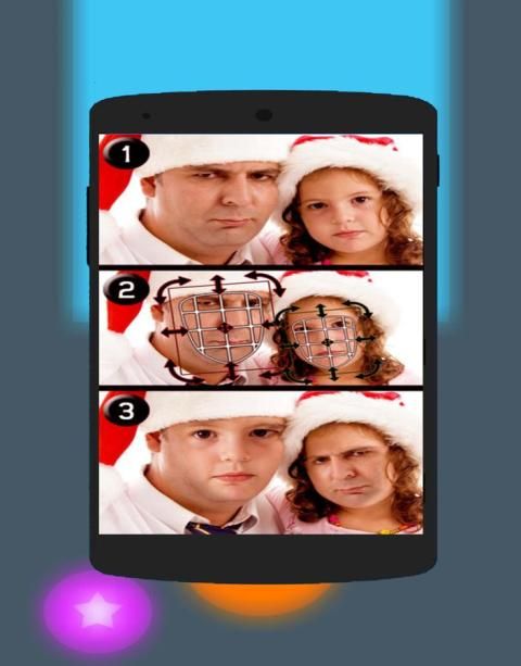 Lucu Swap Wajah - Beralih Wajah memungkinkan sebuah foto pengguna warp wajah ke segala arah dan secara otomatis mendeteksi wajah.
