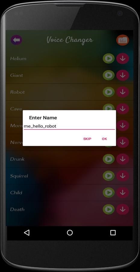 Dengan Lucu Voice Changer, Anda dapat merekam suara Anda dan menguji efek yang berbeda untuk pratinjau sebelum menyimpan. Anda dapat mengatur suara rekaman sebagai nada dering, pemberitahuan, alarm dan suara pesan.