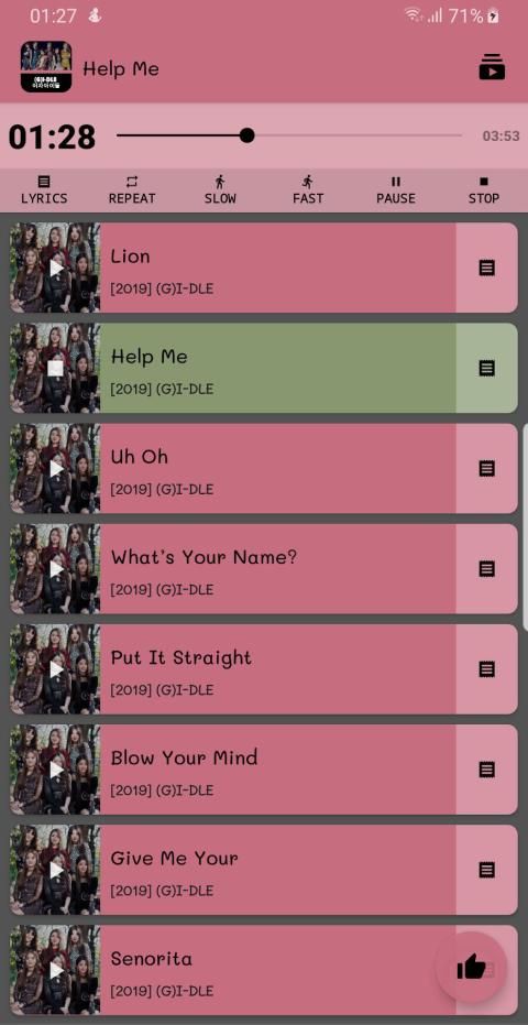 Anda dapat memutar banyak lagu dari penyanyi (G) I-DLE 여자 아이들 favorit. Aplikasi ini sangat mudah digunakan.