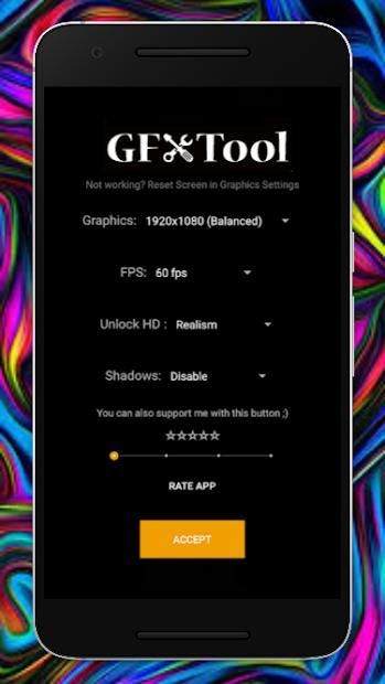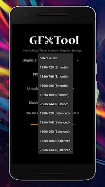GFX Tool adalah aplikasi yang meningkatkan permainan gim bebas. Anda dapat memilih pengaturan keinginan dan meningkatkan gameplay, Ubah resolusi, kualitas, fps, bayangan hanya dalam satu klik.