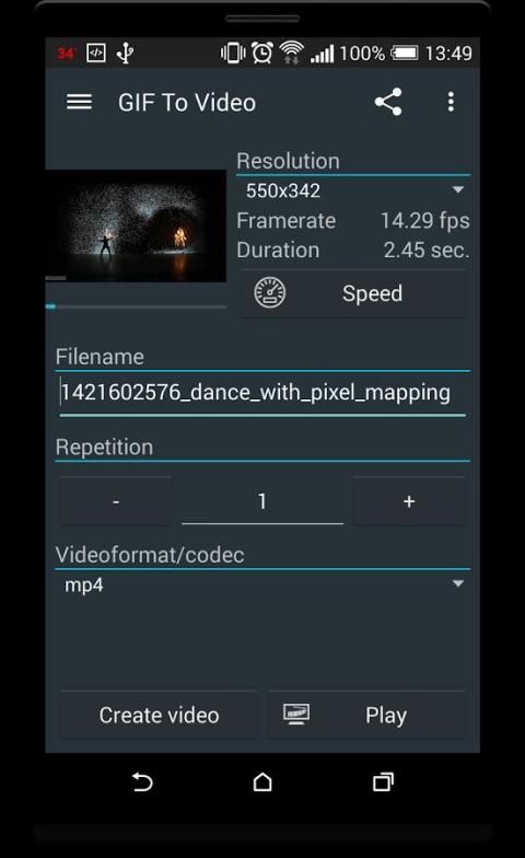 Aplikasi ini digunakan untuk mengubah animasi gif ke video untuk berbagi dengan teman-teman Anda melalui whatsapp atau sesuatu yang lain. Setelah sukses mengkonversi Anda dapat berbagi video baru dibuat langsung dengan teman-teman Anda. Dalam video yang dikonversi akan ada watermark. Jika Anda ingin menghapus watermark yang dapat Anda lakukan untuk sedikit uang.