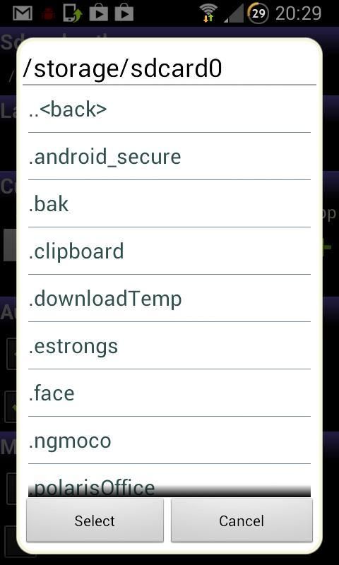 ,press Menu->Click "Setting"->Check "/sdcard/Android"->back to list.