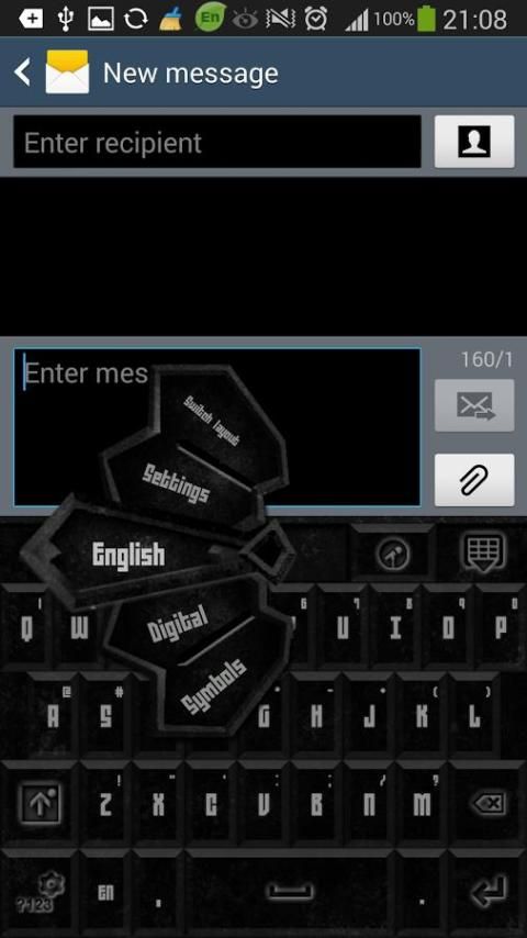 Tekan lama "? 123" tombol dari keyboard. Tekan "Setelan lanjutan". Tekan "Pengaturan Font". Tekan "font Scan". Tekan "Pilih huruf" (sekarang memilih font yang memiliki GO Keyboard Batu Hitam Tema di atasnya).