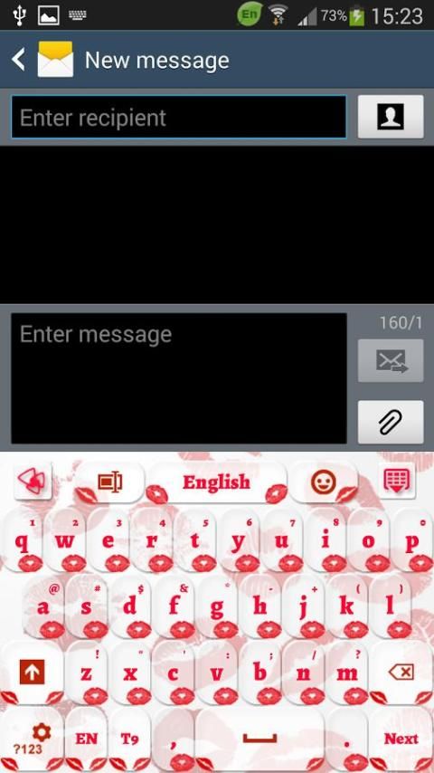 Mengubah cara keyboard smartphone atau tablet tampak dengan yang baru GO Keyboard Sweet Kiss tema. Semua teks indah Anda akan mengirim ke kekasih Anda akan penuh emosi. Jatuh cinta dengan baru GO Keyboard Sweet Kiss tema ini. Jangan takut untuk berbeda dan berbagi cinta!