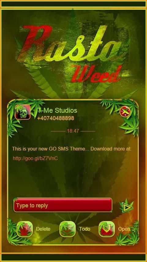 Tema baru merek yang dirancang untuk meningkatkan pengalaman SMS Anda: GO SMS Rasta Weed!