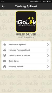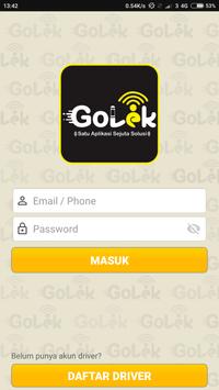 Aplikasi ini merupakan aplikasi untuk driver GOLEK. GOLEK adalah salah satu karya kreatif anak bangsa yang dibuat untuk membantu mempertemukan kebutuhan customer dengan pemilik barang/jasa yg berada disekitar customer. Selain itu GOLEK dibuat untuk membantu menyediakan lapangan pekerjaan. GOLEK bermitra dengan para pengendara Ojek & Mobil/Taxi lokal guna menyediakan layanan ojek online terpercaya dengan tarif terjangkau. GOLEK menyediakan beragam layanan yang akan membantu keseharian hidup anda seperti jasa transportasi, pengiriman barang hingga pesan antar makanan.