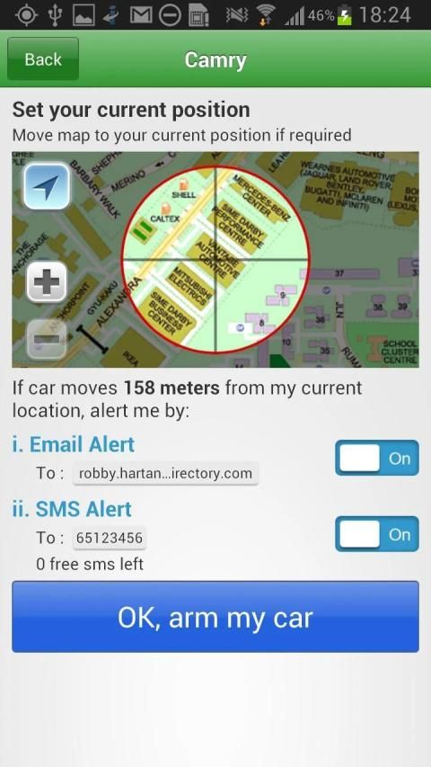 - Geo-fencing alerts, when vehicle exit or enter selected locations or addresses (e.g SMS me each time vehicle enters within 500m of this location)