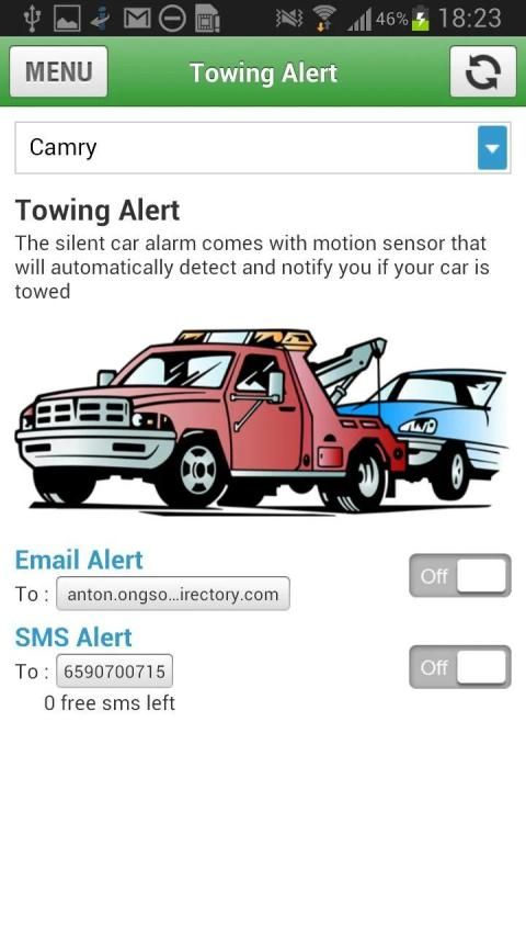 - Towing alerts, when vehicle is towed illegally