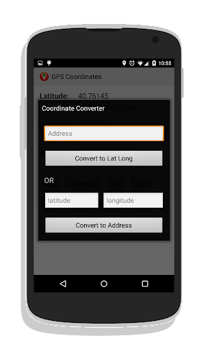 Koordinat GPS Konverter dapat mengonversi alamat apa pun menjadi garis lintang dan bujur, mengonversi garis bujur garis ke alamat,dan temukan koordinat.