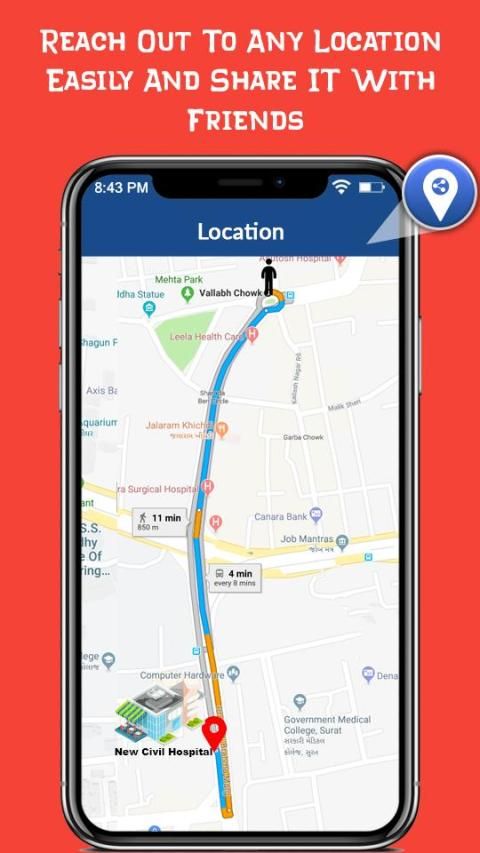 Just install GPS Route Finder : Maps, Navigation and Directions app and tap on the map and get route navigation direction and time with distance as earth map street navigation may provide you detailed traffic plan in the city. You can easily get your current locations. You can share your location with your friends, family or loved ones using social media apps.