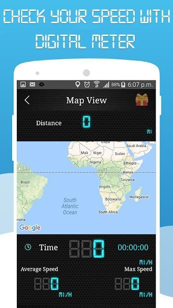 features a fully functional speedometer with both analogs as well as digital speed display and Google Maps Views. Analog meter shows speed just like your cars, Bikes, Bicycle, Trucks speedometer using a dial and a needle. Digital speedometer will show current speed in digits.