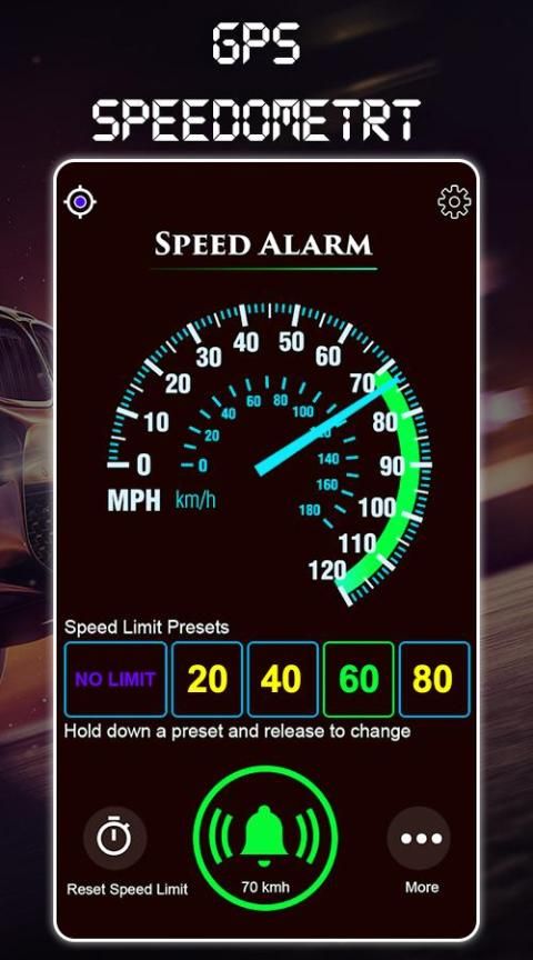 Just an Android phone without a speedometer, this app will measure your speed and ring the alarm when the speed exceeds the limit that you allow, avoiding the Risk is not worth it.