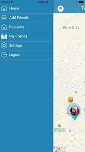 -Friends list: Your added friends will be displayed in the friends list page on the menu. Here you can see your added friends name, image and a button to go to that friends current gps location on the map. There is also a button to remove friend if you longer want to track that persons location.