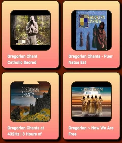 Pemilihan video itu dapat Anda temukan di App ini telah dilakukan dengan teliti, sehingga Anda dapat mendengarkan nyanyian Gregorian terbaik di era abad pertengahan.