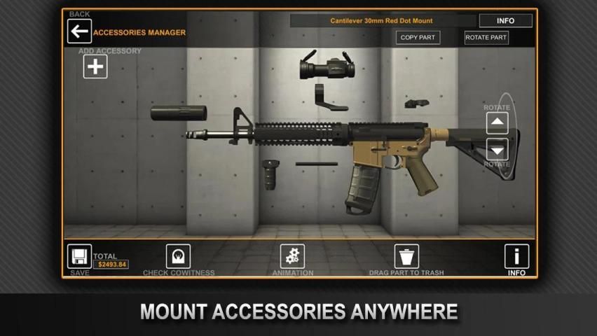 GUNSTRUCTION Lite memiliki senapan AR15 saja dan sebagai versi gratis, memiliki seperangkat fitur berkurang. Untuk membeli platform senjata tambahan Anda akan perlu membeli versi lengkap dari GUNSTRUCTION.