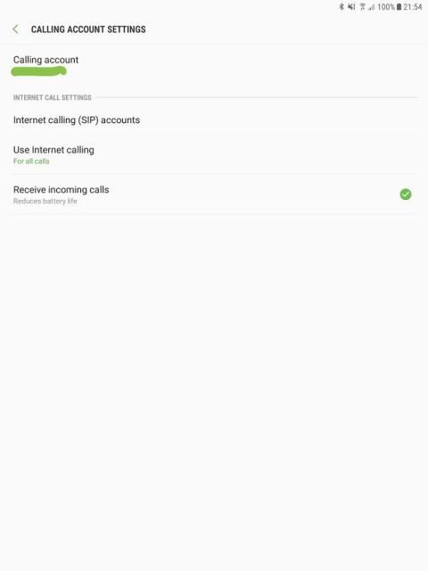 Pada beberapa perangkat (misalnya Samsung 2017 Seri A Telepon & Tablet) aplikasi bekerja - namun layar kosong untuk "Internet Calling Account" ditampilkan. Tampaknya bahwa versi Android pada perangkat ini tidak termasuk layar config ini. Sayangnya, aplikasi ini tidak dapat membantu itu. Sebaliknya, aplikasi VoIP mandiri harus diinstal.