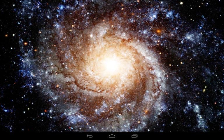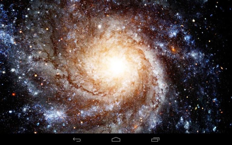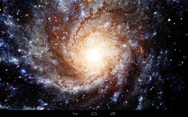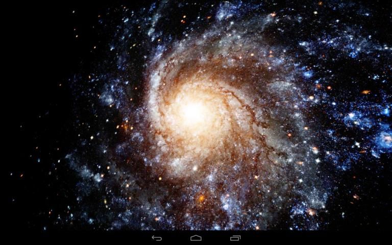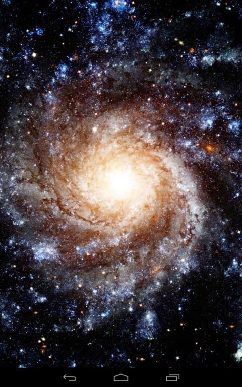 Explore the universe and admire the beauty of distant galaxies located millions of light-years from the Sun. "Galaxy Wallpaper" is a real time visualization of giant spiral disk of stars, dust and glowing gases. See the exceptionally colorful galaxy as it's slowly rotates on your screen. Touch the screen to change the perspective and watch the galaxy from different angles. See hundreds of stars orbiting around the galaxy core.