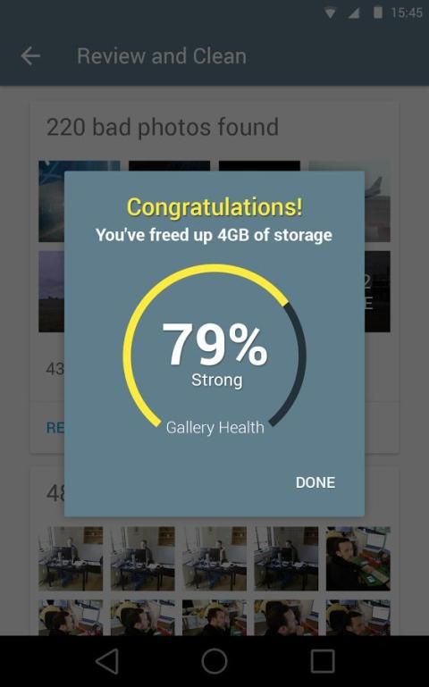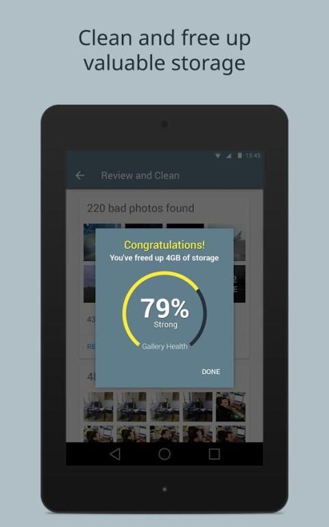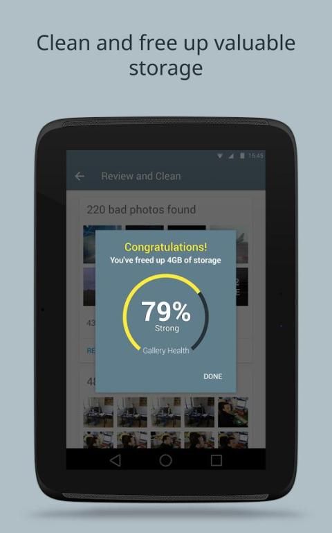 Galeri Doctor adalah satu-satunya foto cleaner yang akan terus memberitahu jika Anda telah mengambil semua foto yang buruk, sehingga Anda dapat selalu menjaga ponsel Anda bersih dengan hanya keran. Galeri di perangkat Android Anda akan terima kasih!