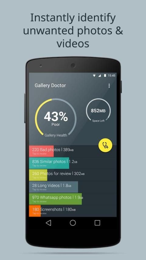 Jadi, bukannya menghabiskan jam bergulir melalui ribuan foto untuk menemukan dan membersihkan foto yang tidak diinginkan Anda, Gallery Dokter menghemat waktu Anda dengan mengidentifikasi mereka segera. Ini adalah foto cleaner sempurna untuk Android yang memungkinkan Anda untuk dengan mudah membebaskan penyimpanan dan mudah mengatur galeri foto Anda.