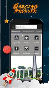 Gancang Browser adalah aplikasi untuk browsing internet dengan sangat cepat. dan sangat di butuhkan untuk kamu yang bermasalah dengan kapasitas smart phone, karena dengan Gancang Browser satu aplikasi ada beberapa fitur aplikasi lainya, Selain itu Gancang Browser sangat cocok untuk kamu yang sering mendownload video maupun music.