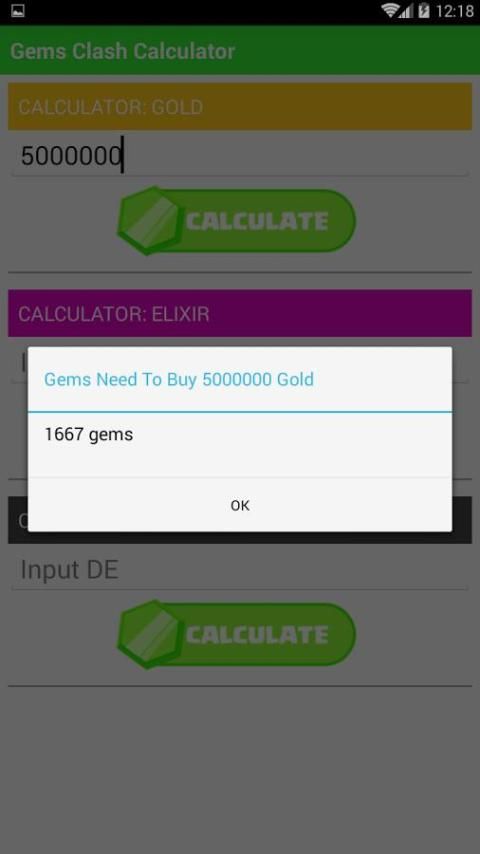 Aplikasi ini digunakan Hitung jumlah permata yang dibutuhkan untuk membeli sejumlah recources di Clash of Clans. (Emas, Elixir, dan Dark Elixir)