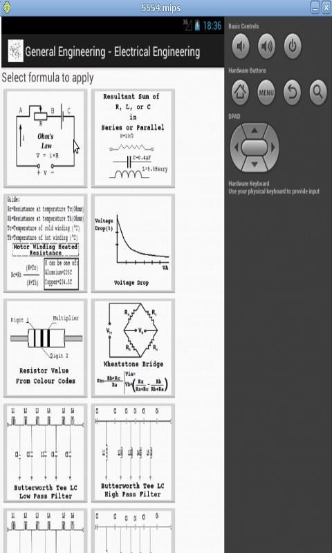 1 - Sebuah modul untuk Hukum Ohm. Ini membantu Anda menemukan baik Power, Resistance, Intensitas, atau Voltage.