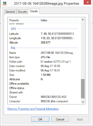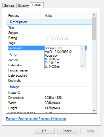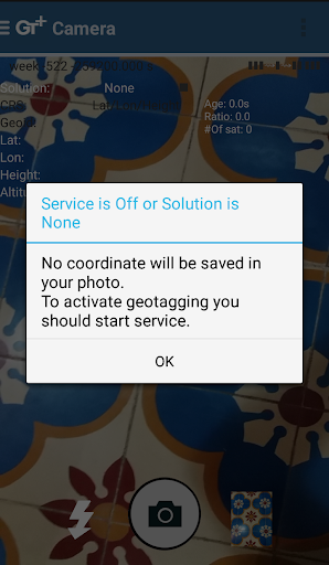 Image taken by this app will have coordinate metadata, accuracy, and solution type (internal, single, float, or fix).